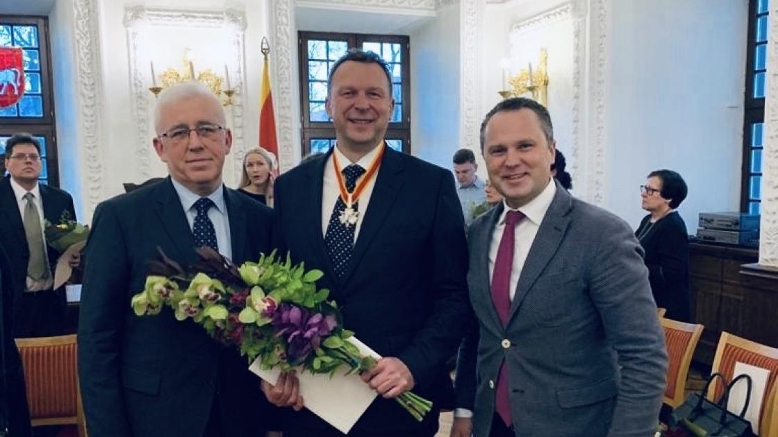 2-ojo laipsnio Santakos garbės ženklas už nuopelnus Lietuvai ir Kaunui daug metų kuriant Lietuvos ir Ukrainos strateginę partnerystę ir bendradarbiavimą įteiktas Ukrainos garbės konsului Vygandui...
