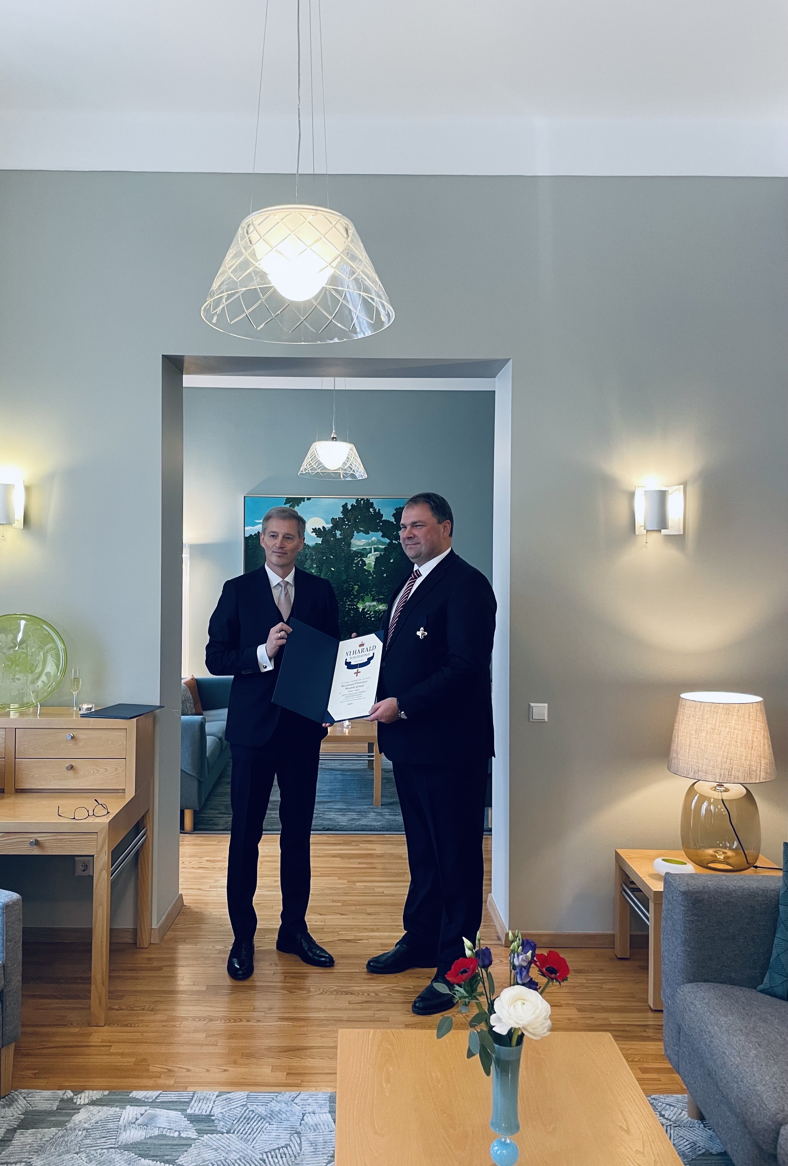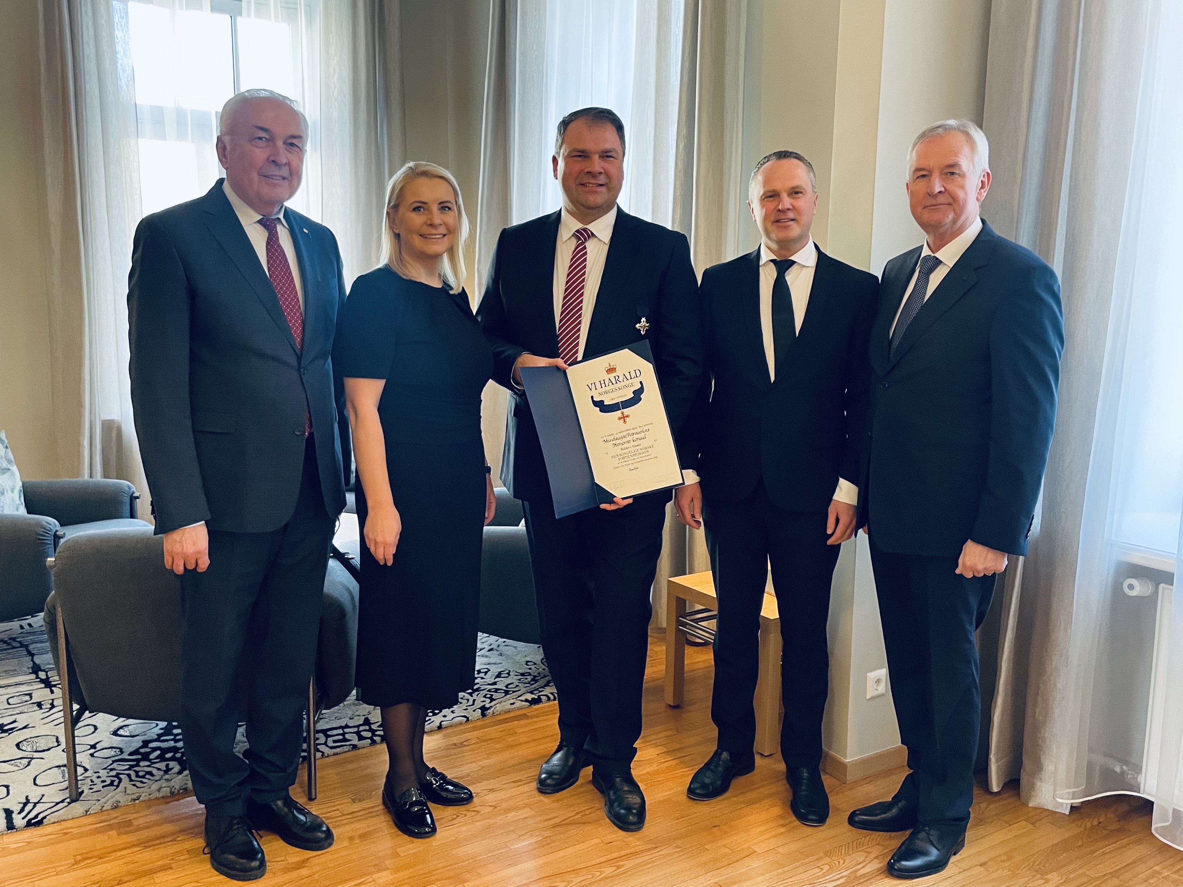 Norvegijos Garbės konsului Mindaugui Petrauskui įteiktas apdovanojimas už nuopelnus 1-ojo laipsnio Riterio kryžiius!